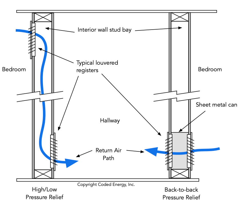 All that being said, I think this ventilation design in this house would work fine in any climate, maybe not in a larger or more complex house.  Regarding the unconditioned OA being dumped behind the return grille in a hallway, an idea I’ve toyed with (in case there was a complaint in the homes we did this in) is some sort of one-way damper on the return grille to force the OA to go up into the ducts rather than down through the grille.  I think the air would be dispersed enough to not be noticed on mild days.  I’d have to think about the potential for condensation inside the ducts in very humid climates.  Perhaps a dehumidistat behind the return grille that turns on the central fan if it gets above a certain humidity.
