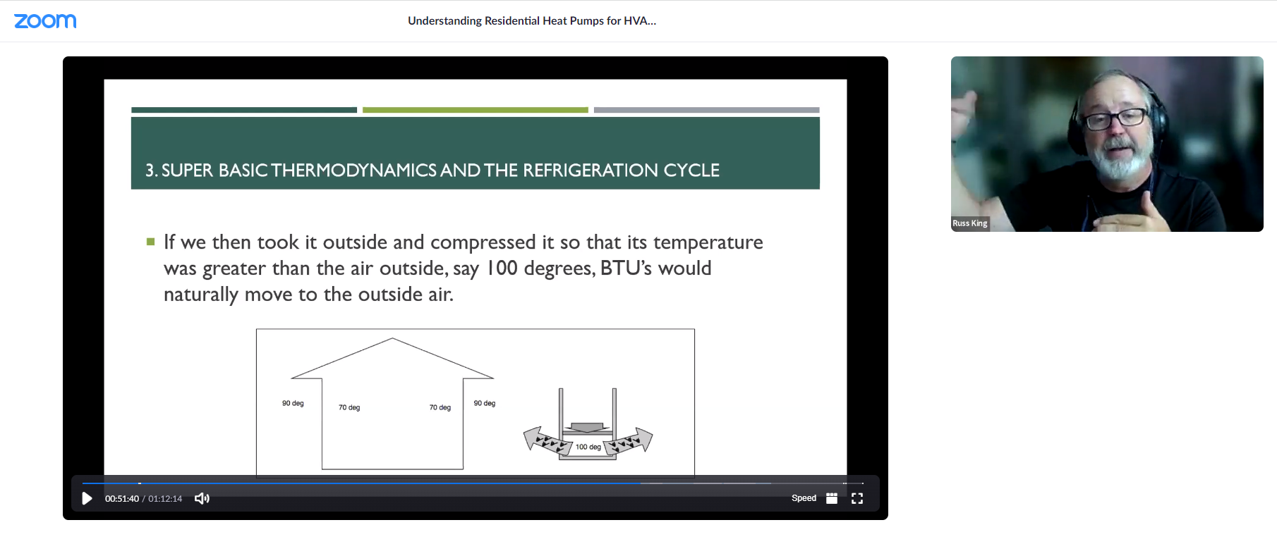 The wonderful folks at the Sonoma County office of Energy and Sustainability asked me to do a 1 hour webinar on how heat pumps work. The target audience is homeowners, so it needed to be pretty basic. I think it turned out pretty well. There was a great turnout and it generated a lot of interest.